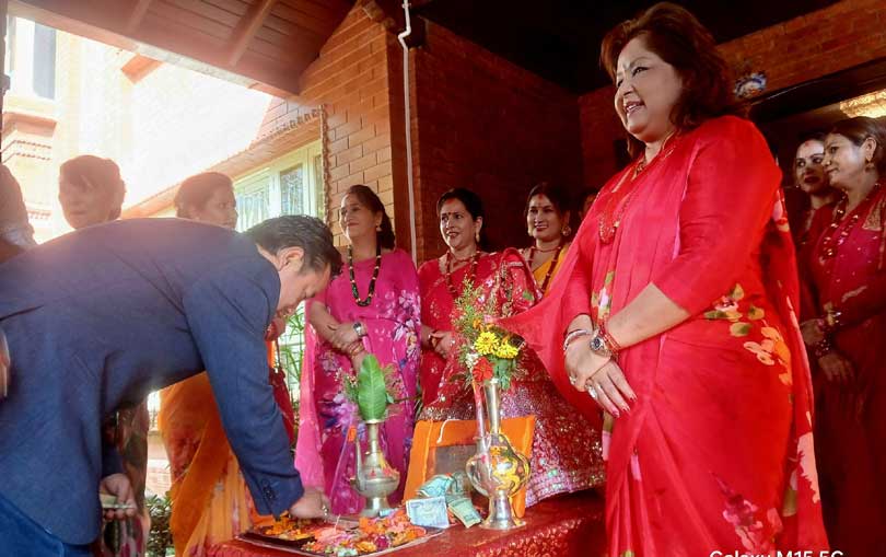 परराष्ट्रमन्त्री डा.राणाद्वारा आयोजित गौरा पूजामा तरुण अध्यक्ष गुरुङ सहभागी