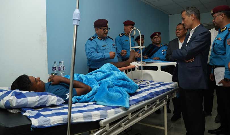 काठमाडौं । गृहमन्त्री ओमप्रकाश अर्यालले जेनजी आन्दोलनका क्रममा घाइते भइ उपचाररत नेपाल प्रहरीका प्रहरी कर्मचारीहरूसँग भेट गरेर स्वास्थ्य अवस्थाको जानकारी लिएका छन् ।