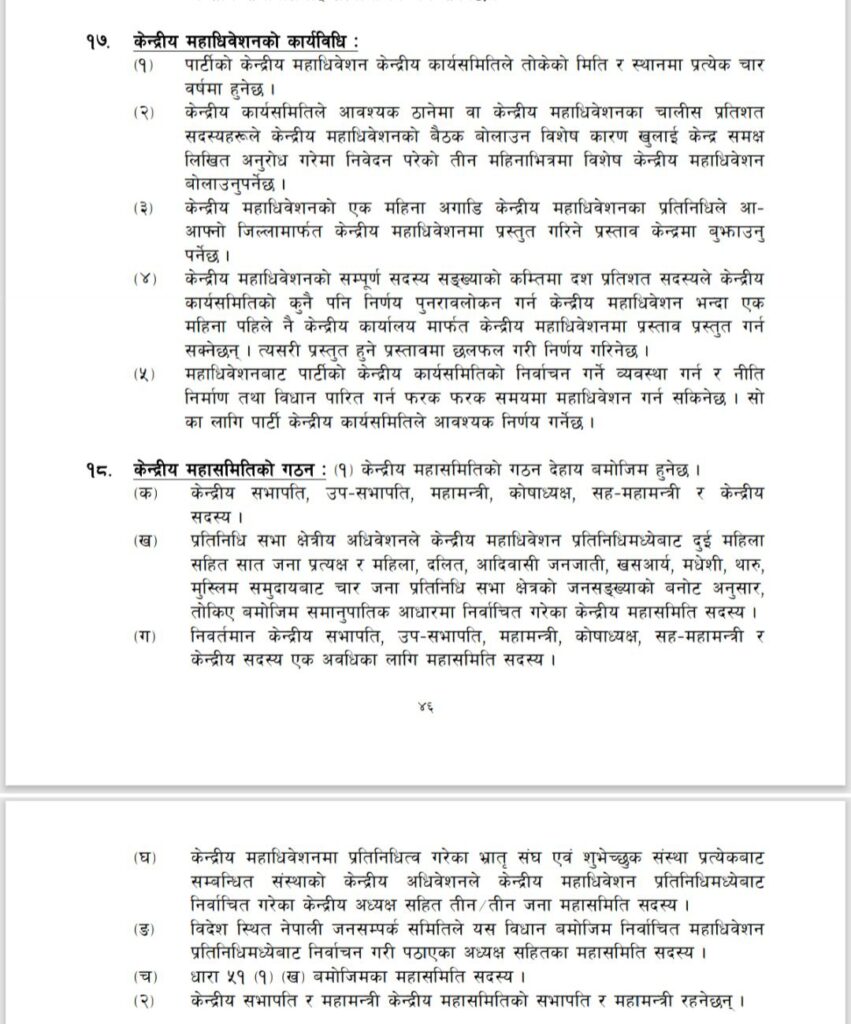 ‘तर, यो बुँदाले के के गर्ने हो ? कसो कसो निर्णय गर्ने हो ? कहिँ कतै उल्लेख भएको मैले चाहिँ भेटिन,’ तरुण नेता पोखरेलले भने, ‘हस्ताक्षरकर्ताले अहिले मागेको मागअनुसार गर्नलाई त पहिला पार्टीको केन्द्रीय समितिको बैठकबाट १७(२) को बुँदा संशोधन गर्नु पर्यो ।’
