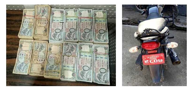 मधेश प्रदेश ०३–०२५ प ९८०७ नम्बरको मोटरसाइकललाई रोकी जाँच गर्दा मोटरसाइकलको एयर फिल्टरमा लुकाइएको नेपाली रुपियाँ १० लाख बरामद एसपी पाठकले जानकारी दिएका छन् ।