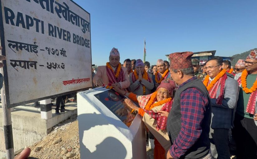 मुख्यमन्त्री बानियाँ र १०३ वर्षीय स्थानीय वृद्ध महिलाद्वारा राप्तीको पुल उद्घाटन
