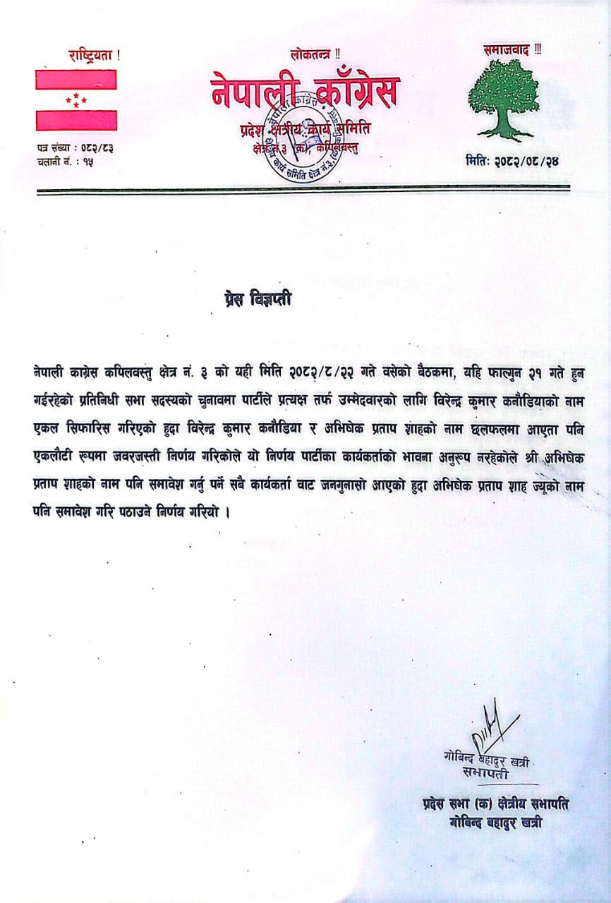 कांग्रेसले केन्द्रीय समितिबाट बुधबार गरेका निर्णयहरू
