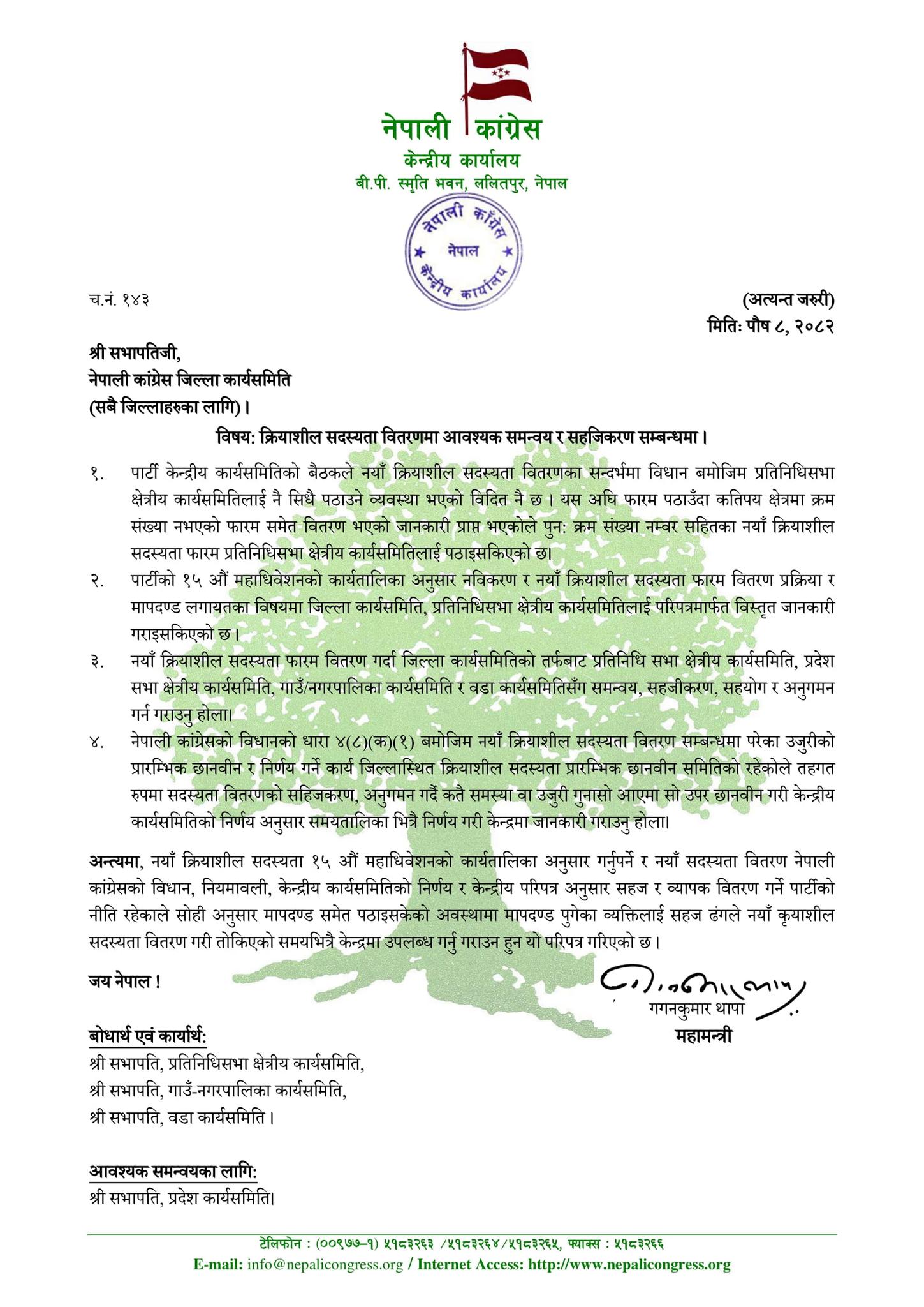 कांग्रेसले केन्द्रीय समितिबाट बुधबार गरेका निर्णयहरू