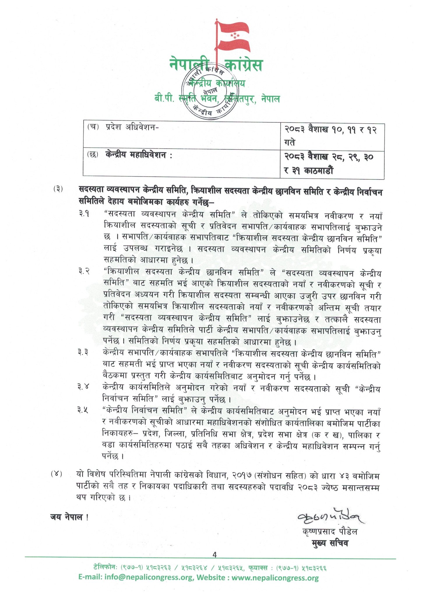 कांग्रेसले केन्द्रीय समितिबाट बुधबार गरेका निर्णयहरू