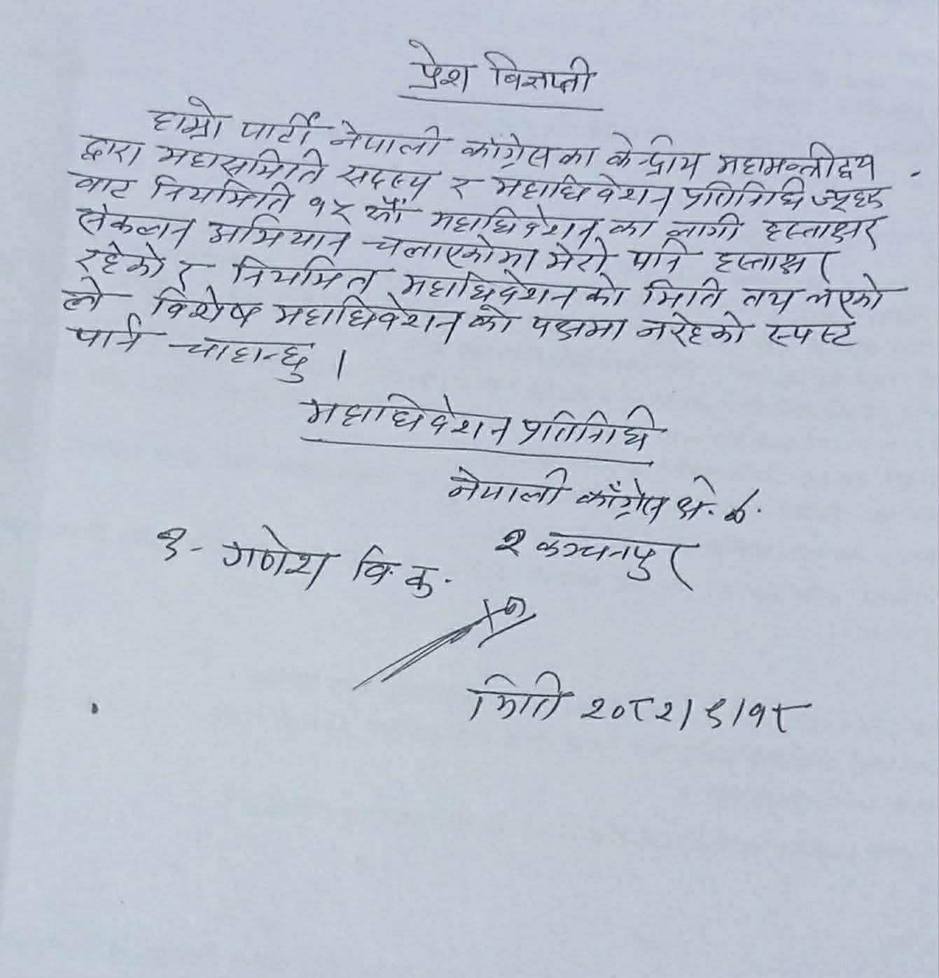 कांग्रेसले केन्द्रीय समितिबाट बुधबार गरेका निर्णयहरू