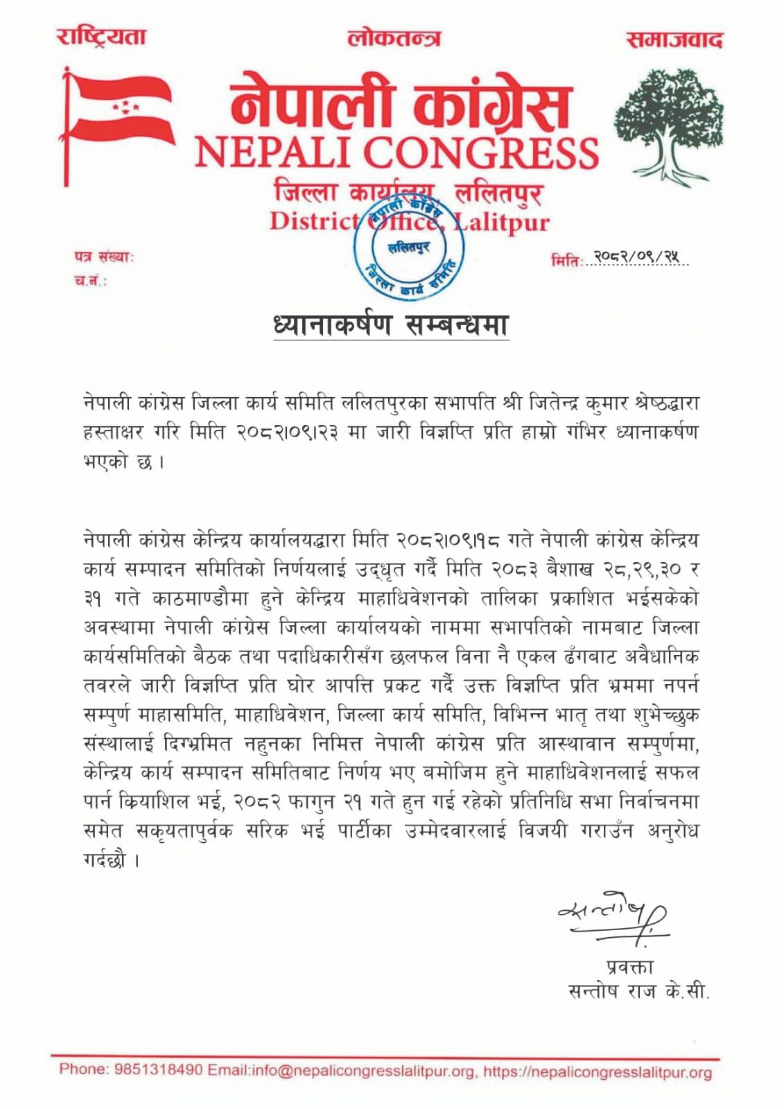कांग्रेसले केन्द्रीय समितिबाट बुधबार गरेका निर्णयहरू