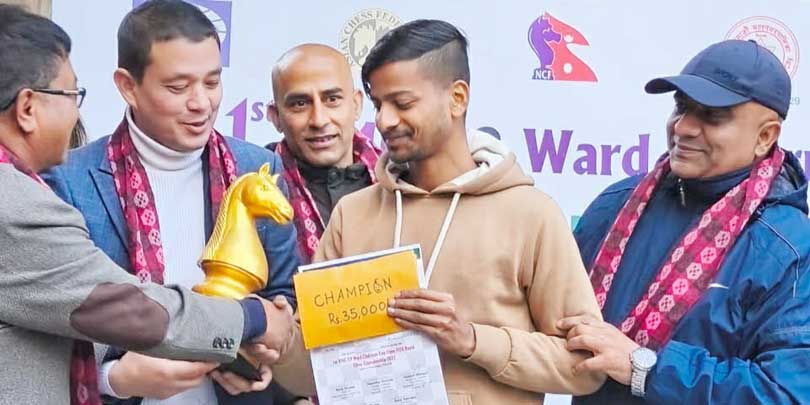 अनामनगरस्थित २९ नं. वडामा सञ्चालन भएको स्पर्धामा भारतका १९०९ रेटेड किसन कुमारले ८ अंक प्रोग्रेसिभ ५३.५ प्वाइन्टका आधारमा उपाधि जित्न सफल भएका छन् ।
