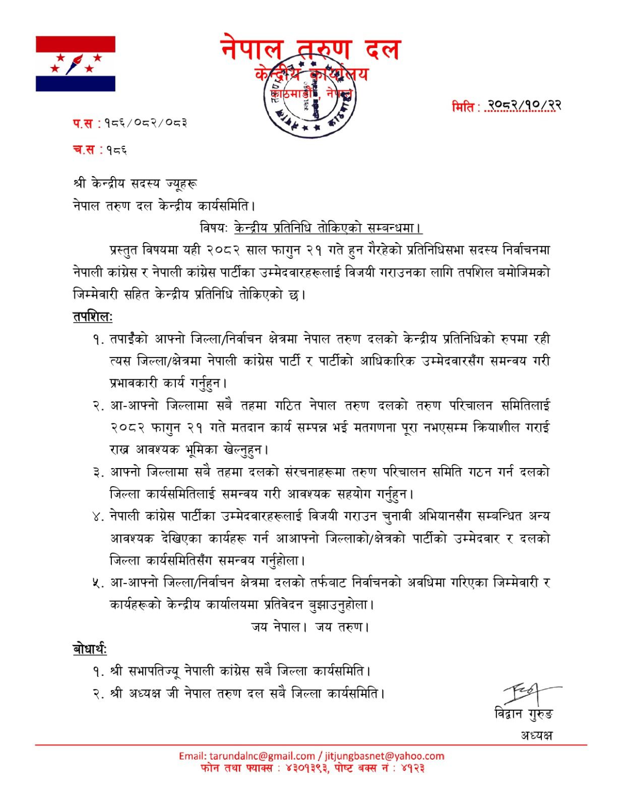 चुनावको बेला कांग्रेस नवलपरासीका कार्यालय सचिव सुवेदीद्वारा पार्टी परित्याग