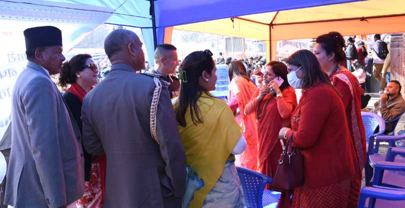काठमाडौं । महाशिवरात्रिको अवसरमा नेपाल प्रहरी श्रीमती संघ, काठमाडौंले पशुपतिनाथ मन्दिर दर्शन गर्न आउने श्रद्धालु भक्तजनहरूलाई प्रथामिक स्वास्थ्य उपचार, शुद्ध पिउने पानी तथा सुरक्षार्थमा खटिएका प्रहरी कर्मचारीहरूलाई खाजा शिविर कार्यक्रम सञ्चालन गरेको छ ।