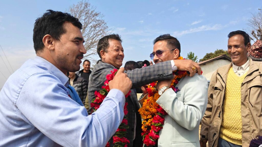 ‘आगामी दिनमा अर्को पटक मसहित चुनावमा नेपाली कांग्रेसको टोलीफेरि चुनावको प्रचारमा आइरहँदा त्यतिखेर पिचबाटोमा आउने छौँ,’ मन्त्री राणाले भने, ‘त्यसका लागि तपाईहरूले रुख चिन्हमा मतदान गरेर डा.गोविन्दराज पोखरेल, तपाईले हेर्दा डा.गोविन्दराज पोखरेल व्यक्ति मात्रै नभएर सिङ्गो नेपाली कांग्रेसको उम्मेदवार हो ।’