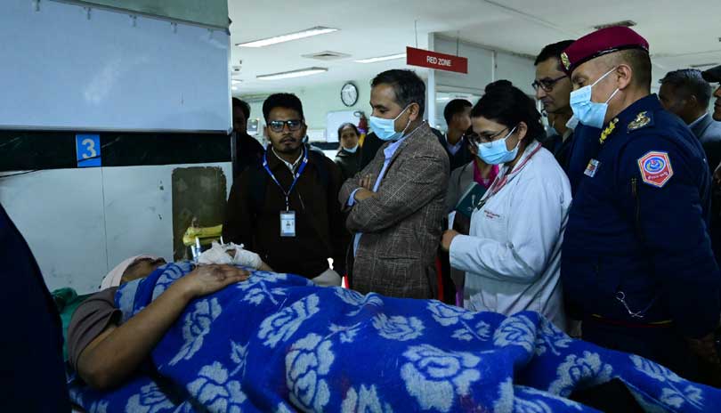 सोमबार गृहमन्त्री अर्याल, गृहसचिव राजकुमार श्रेष्ठ र नेपाल प्रहरीका आईजीपी दानबहादुर कार्कीले घाइतेहरूसँग भेट गरेर उपचारको अवस्था र स्वास्थ्यका विषयमा जानकारी लिएका हुन् ।
