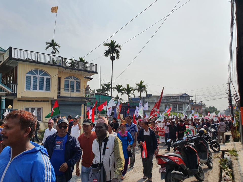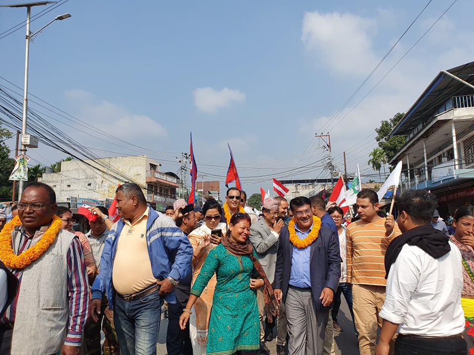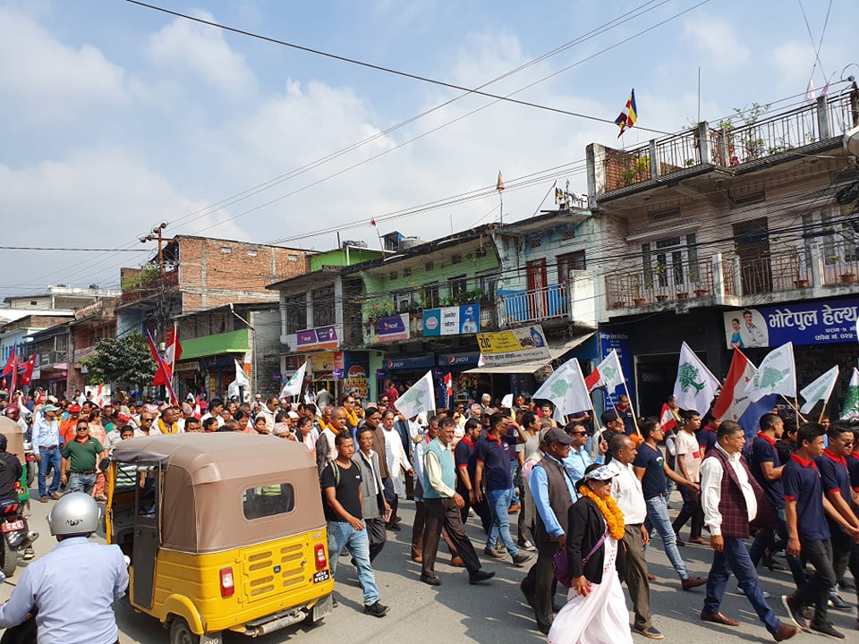 उम्मेदवारी मनोनयन गर्न जाने क्रममा नेपाली कांग्रेसका सयौँ कार्यकर्ताले कांग्रेसको पक्षमा नारावाजी गरेका थिए ।