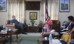 काठमाडौं । परराष्ट्रमन्त्री डा.आरजु राणासँग नेपालका लागि चीनका राजदूत चेन सोङले शिष्टाचार भेटवार्ता गरेका छन् । बुधबार सिंहदरबारस्थित परराष्ट्र मन्त्रालयमा...