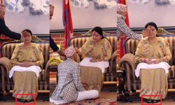 काठमाडौं । एमालेकी पूर्वउपाध्यक्ष समेत रहेकी राष्ट्रपति विद्यादेवी भण्डारीले दशैँको टीका लगाउने क्रममा जुत्ता नखोलेर टीका र जमरा लगाएकी छिन्...