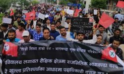 काठमाडौं । नेपाली कांग्रेसको भ्रातृ संगठन नेपाल विद्यार्थी संघ (नेविसंघ)ले विश्वविद्यालयका पदाधिकारी नियुक्तिमा हुने दलीय भागबण्डाको विरोधमा काठमाडौंमा खबरदारी र्याली...