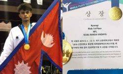 काठमाडौं । मित्र राष्ट्र दक्षिण कोरियामा सम्पन्न सिनहान युनिभर्सिटी अन्तर्राष्ट्रिय ताईक्वान्डो च्याम्पियनसिप सुजलनन्द बैद्यले स्वर्ण पदक हासिल गरेका छन् ।...